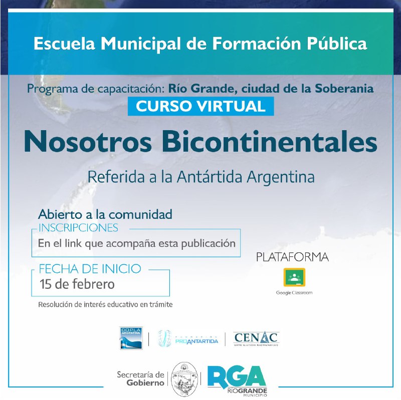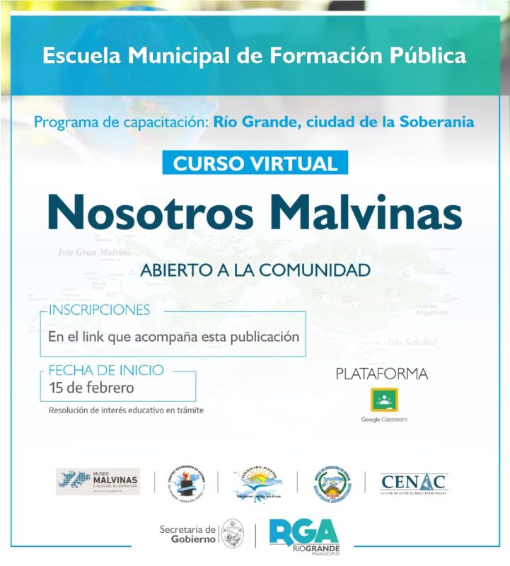 El Municipio invita a la comunidad toda a participar de los cursos virtuales “Nosotros Malvinas” y “Nosotros Bicontinentales”. Ambas propuestas, que se llevarán adelante a través de la Secretaría de Gobierno, buscan generar una ciudadanía mejor informada y más comprometida con las causas de la Soberanía Nacional.