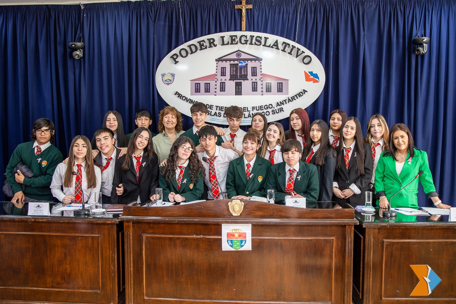 La presidenta del Parlamento, Mónica Urquiza recibió a las y los alumnos de 4º año del Colegio Integral de Educación Ushuaia (CIEU), “Libertador General San Martín”, quienes efectuaron una simulación de una sesión especial. La actividad se efectuó en el Recinto ubicado en Yaganes e Islas Malvinas y contó con la asistencia del personal legislativo.