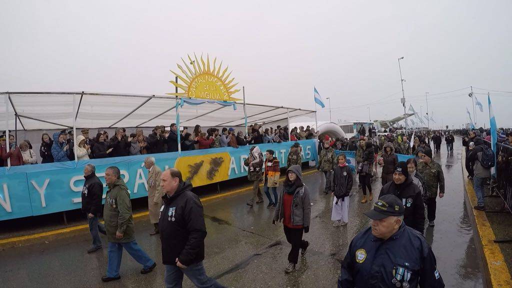 “A pesar de la lluvia y el clima nadie se movió, todos se quedaron a acompañar y desfilaron en honor a nuestros héroes”, subrayó y aseguró que “este es un homenaje a nuestros compañeros y un recordatorio que no debemos nunca abandonar la lucha por nuestras islas”.