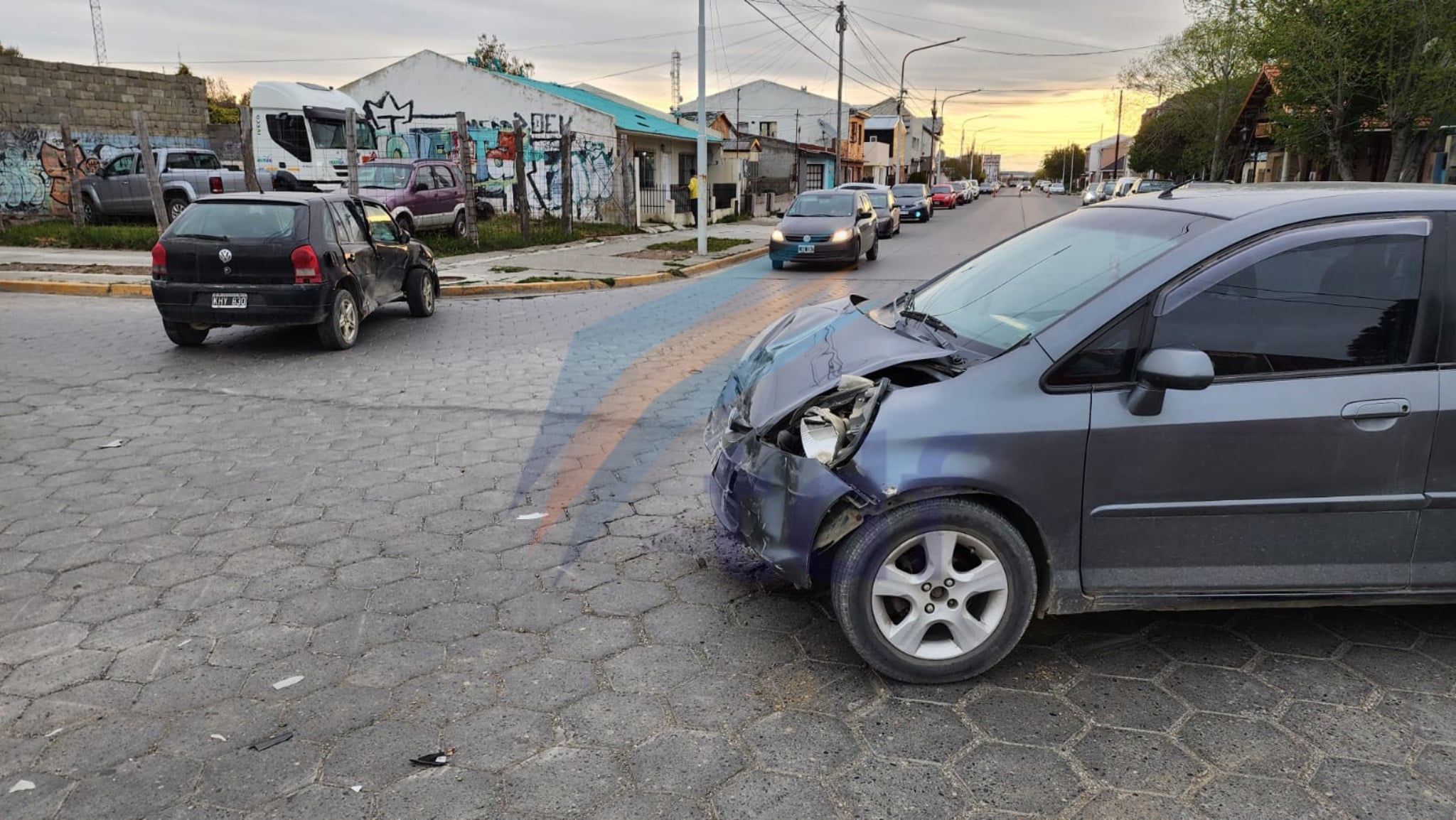 El Volkswagen circulaba por la calle Mackinlay y al cruzar por la intersección con la calle Estrada, es impactado por el lateral izquierdo del conductor, por el Honda Fit.
