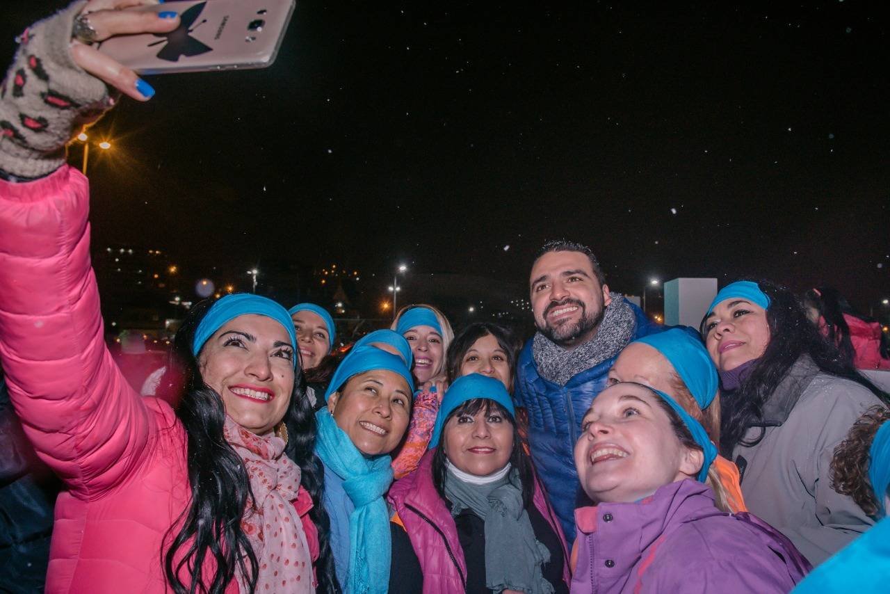 Junto al presidente de la Dirección provincial de Energía, Alejandro Ledesma, realizaron la cuenta regresiva para habilitar las luces led de la nueva instalación urbana. Participaron también el diputado nacional Matías Rodríguez, el presidente del Concejo Deliberante de Ushuaia Juan Carlos Pino, el concejal Hugo Romero, miembros del Gabinete municipal y gran cantidad de vecinos y vecinas.