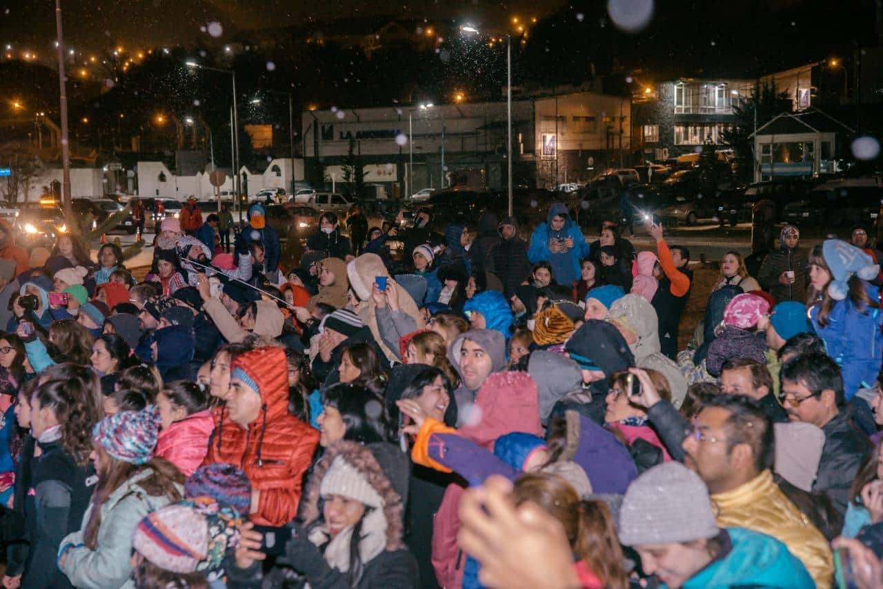 El acto tuvo como marco una oportuna nevada que permitió presentar rápidamente los festejos que se acercan para la Fiesta Nacional de la Noche más Larga. El intendente anunció los artistas que estarán participando de las nueve noches de festejos, invitó a los vecinos a disfrutar de la Fiesta, agradeció a las empresas privadas por su enorme colaboración y a la Banda Municipal por el acompañamiento.