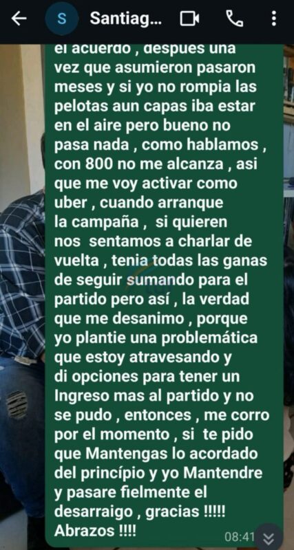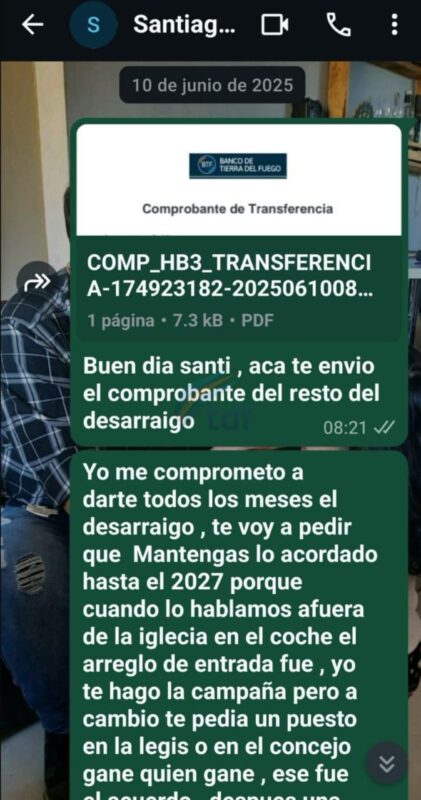 En un audio clave, que complementa la denuncia inicial de Correa, se escucha al diputado Pauli no solo reclamar el pago, sino que instruye el cambio definitivo en la metodología. Luego de que Correa le enviara un comprobante, Pauli responde agradeciendo y dando una nueva orden: «A partir de ahora mandaselo directamente a Martín, que es el que se encarga de pagar los alquileres».