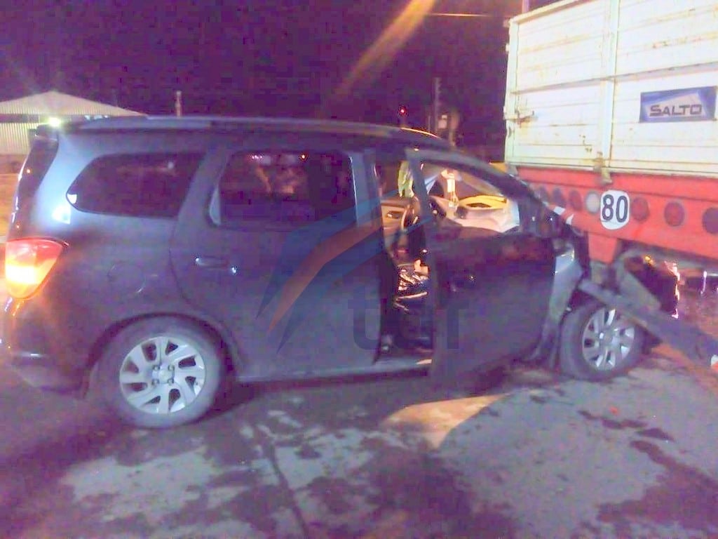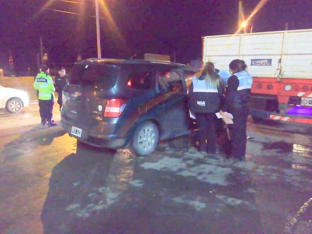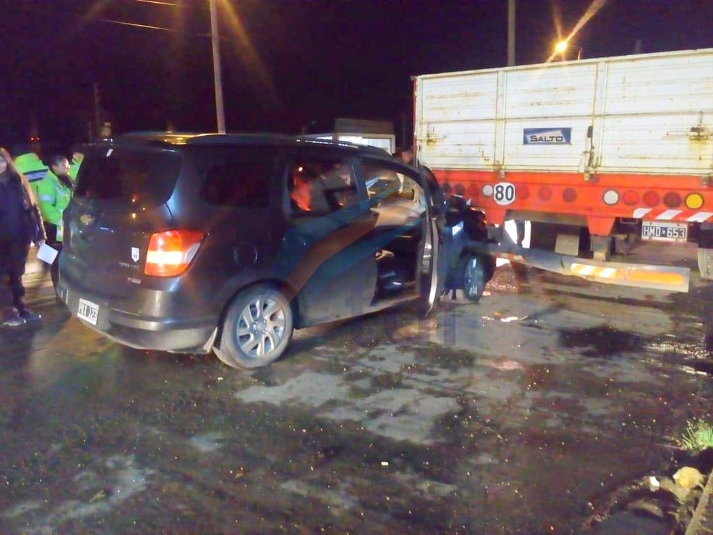 En el lugar las unidades de emergencia se encontraron con un rodado Chevrolet Spin, el cual estaba con su frente destrozado a causa del impacto contra uno de tantos acoplados estacionados en la zona.