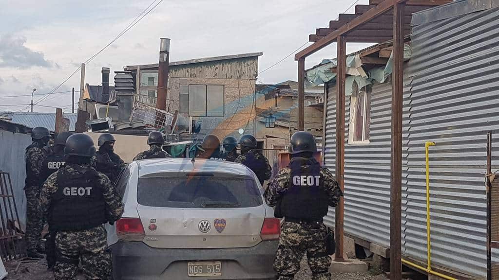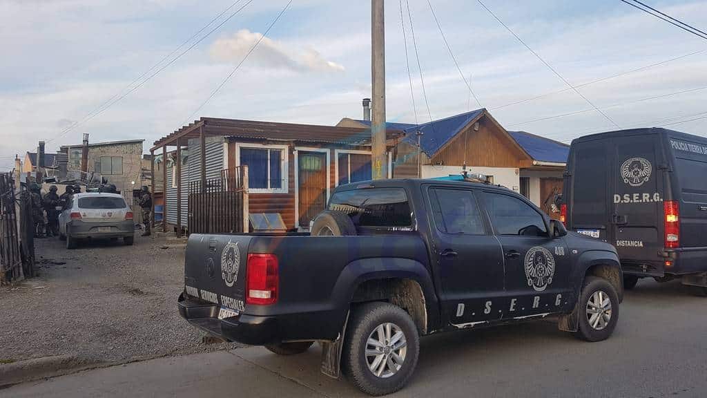 El grupo táctico irrumpió en calle Colón al 400 al fondo, domicilio de la familia Paillacar, allanándose asimismo en calle Venezuela al 100 y el restante procedimiento en la zona de margen sur.