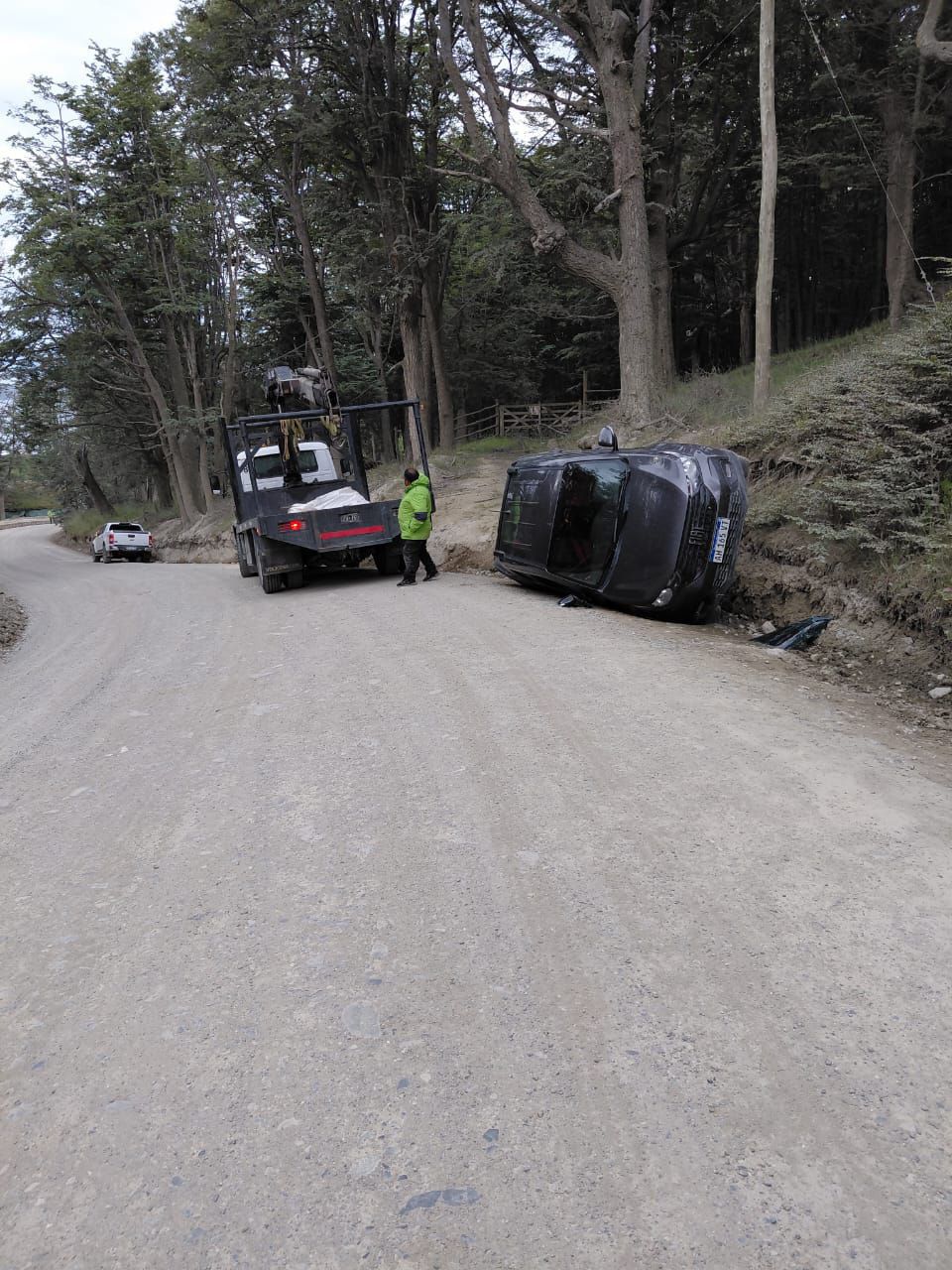 Personal policial de la comisaría Quinta de Ushuaia intervino en el ingreso al barrio Dos Banderas a raíz del despiste de un vehículo Fiat Strada, que era conducido por Germán Cañizares, de 46 años.