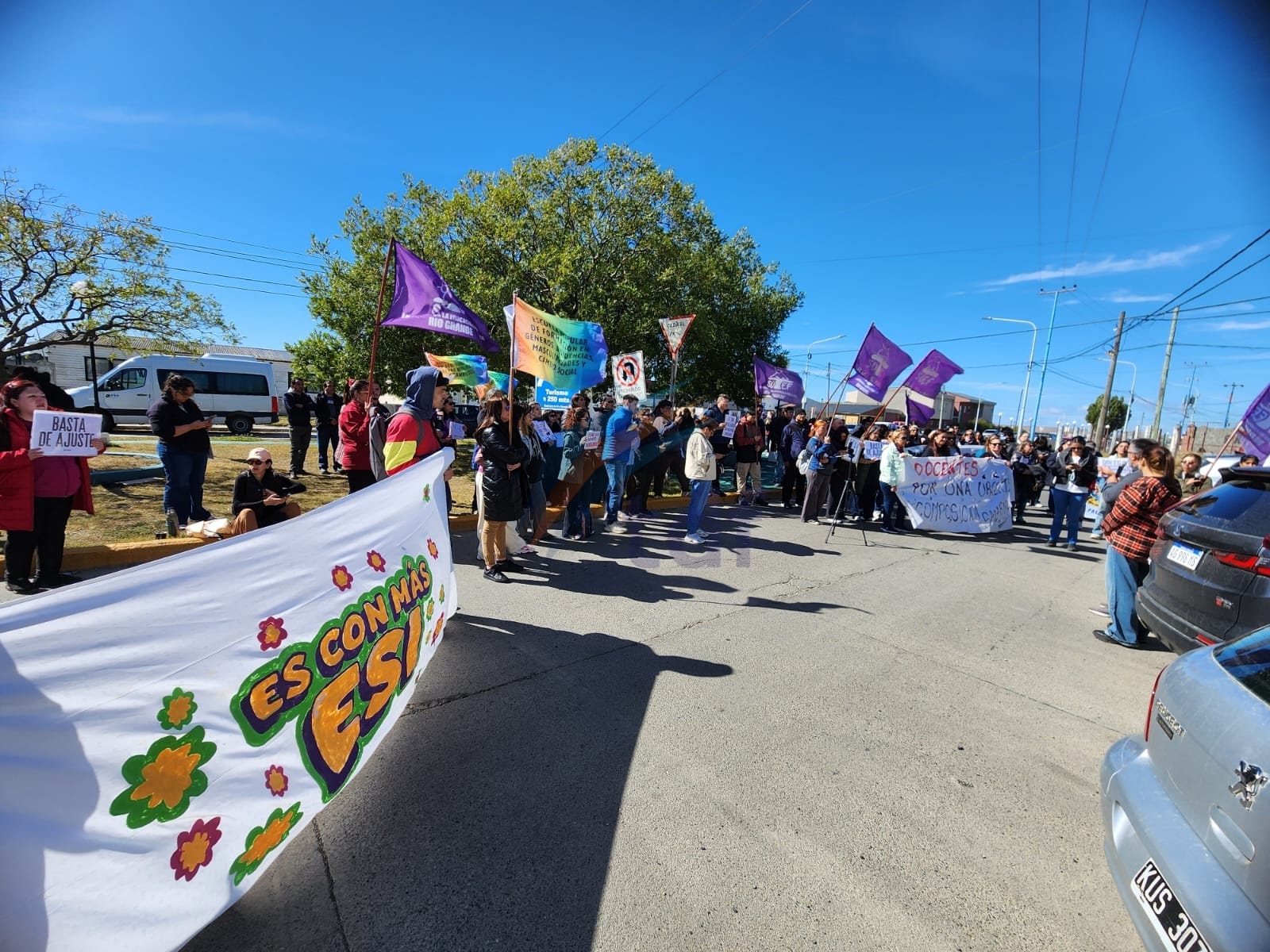 En el marco de la segunda jornada de paro docente, trabajadores de la educación nucleados en el Sindicato Unificado de Trabajadores de la Educación Fueguina llevaron adelante un corte sobre calle Elcano, frente a una delegación del Ministerio de Educación, en rechazo al cierre de la Escuela Popular de Género.