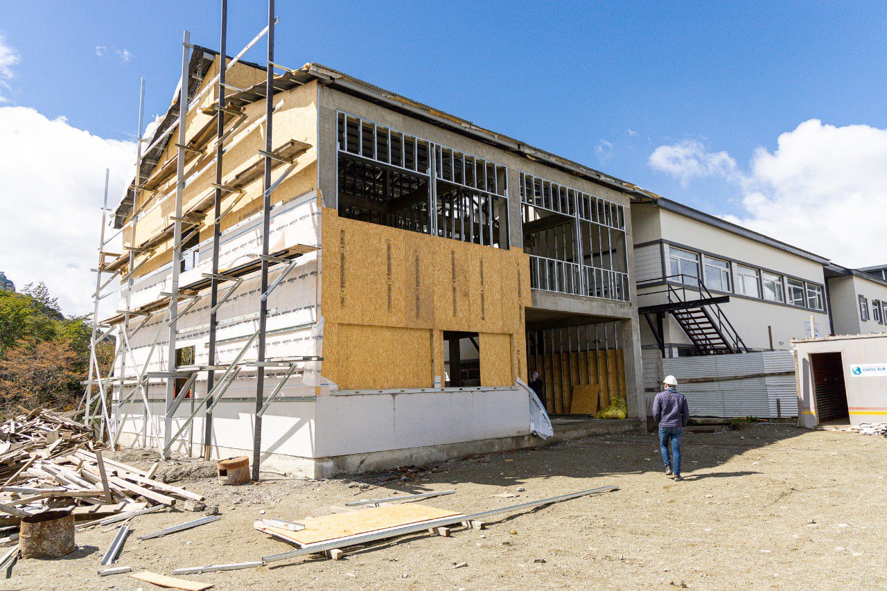 La ministra de Obras y Servicios Públicos, Gabriela Castillo recorrió los trabajos de la ampliación llevados adelante en el edificio de la Escuela N° 47 y el Colegio Técnico Provincial “Antonio Martín Marte” en el Valle de Andorra de Ushuaia.
