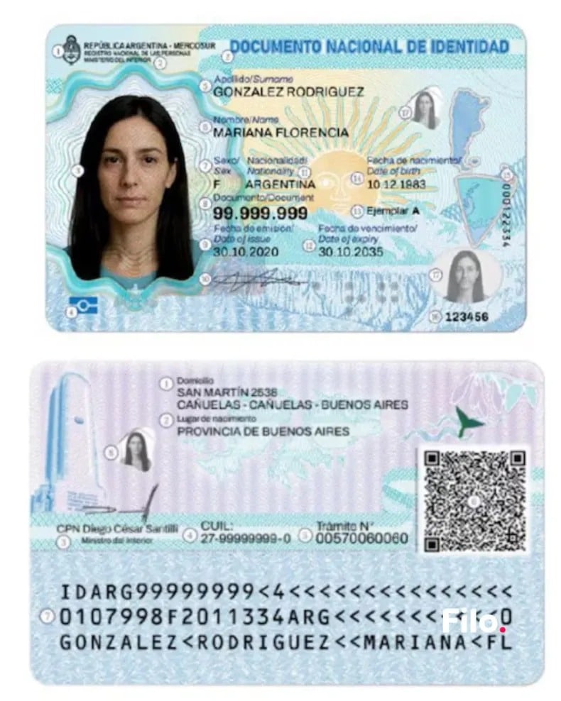 Para ciudadanos argentinos mayores de 14 años, el documento incorporará el escudo nacional, la inscripción “República Argentina – Mercosur. Registro Nacional de las Personas. Ministerio del Interior”, la leyenda “Documento Nacional de Identidad” y una fotografía a color, de frente.