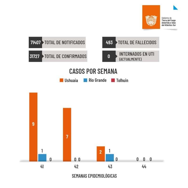 La ministra de Salud, Judit Di Giglio se refirió a la situación epidemiológica de la provincia y confirmó que “terminamos la semana N°44 sin casos positivos; sin casos activos; sin fallecidos y sin internados por COVID -tanto en UTI como en sala general-”.