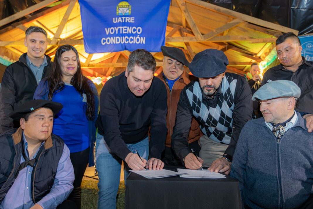 Martín Perez junto al representante de UATRE, Ariel Aguilar, firmaron el acta acuerdo para la adjudicación de un predio donde podrán construir su nueva sede en Río Grande.