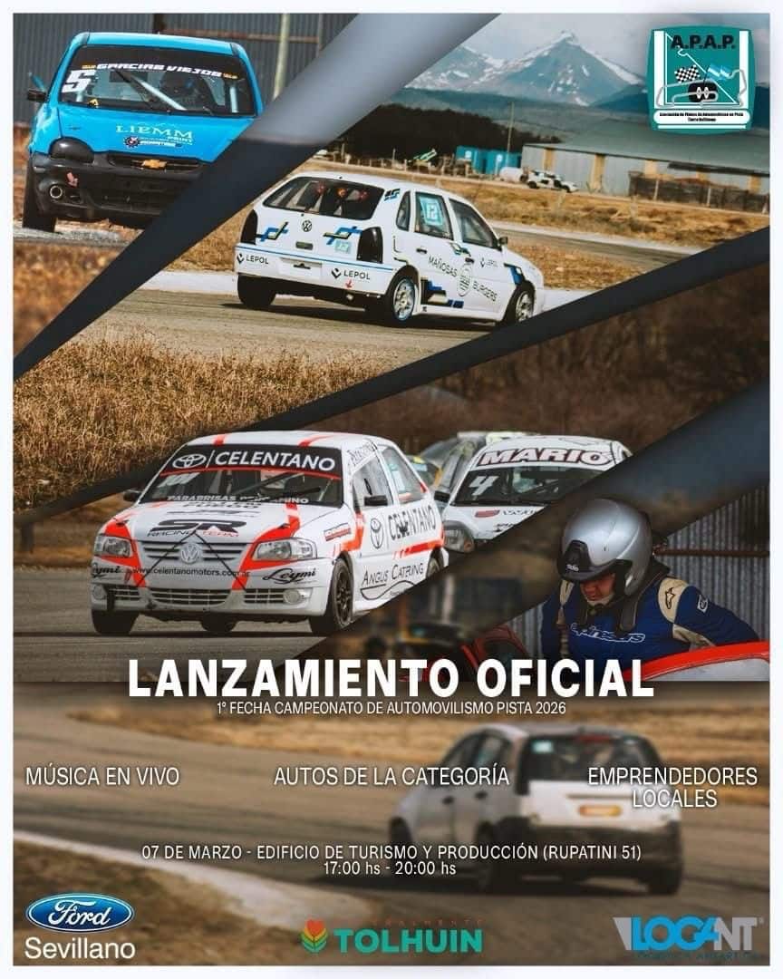 Una de las actividades será el lanzamiento oficial de la primera fecha del Campeonato Fueguino de Automovilismo Pista y Turismo Carretera 2026, que se realizará el sábado 7 de marzo entre las 17 y las 20 horas en el edificio de Turismo y Producción del Municipio de Tolhuin, ubicado en Rupatini 51. Durante la jornada habrá exhibición de autos de la categoría, música en vivo y stands gastronómicos. La propuesta está pensada como un espacio de encuentro para compartir en familia y comenzar a palpitar el inicio de una nueva temporada del automovilismo fueguino en el Corazón de la Isla.