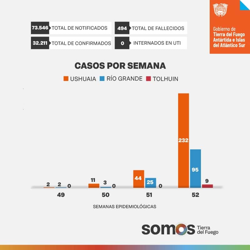 En la última semana se detectaron 232 nuevos casos en Ushuaia, 95 en Río Grande y 9 en Tolhuin.