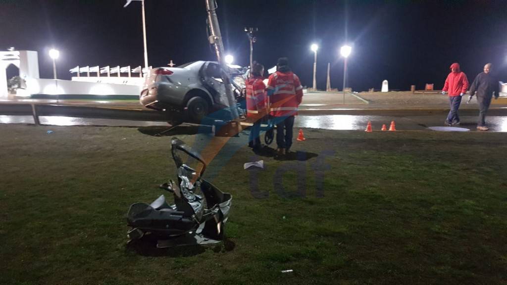 El rodado Fiat Siena circulaba en sentido norte cuando por razones que aún se intentan determinar, su conductor perdió el control frente al monumento a los Héroes de Malvinas, para terminar impactando lateralmente, con la puerta del acompañante, sobre una columna de alumbrado y un guardarrail.
