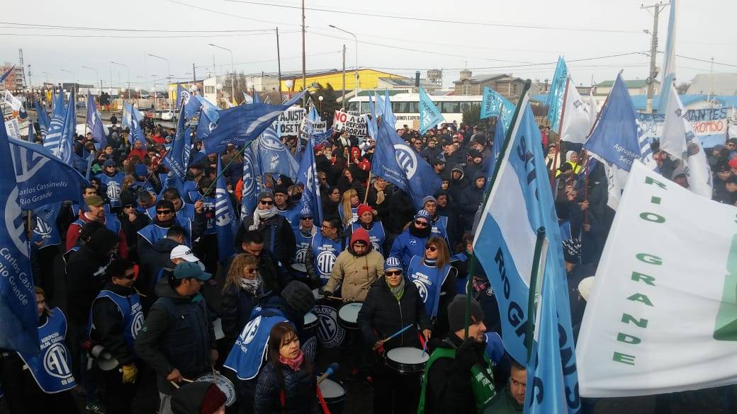 Sectores como la UOM, Camioneros, el CEC, ATE, ANUSATE, SOEM de Ushuaia, ASIMRA, ASOEM, SMATA, SUPARA, SUTEF, ATSA, UTA, SADEM, Petroleros Privados, AOT, SOIVA, Sindicato Austral de Luz y Fuerza, UOCRA, UTEDIC, SITOS, trabajadores mineros de Río Turbio, Santa Cruz, profesionales de la salud, estudiantes, docentes, empleados de comercios, la propia Cámara de Comercio, jubilados, distintas juntas vecinales, fuerzas políticas y sociales como FORJA, Nuevo Encuentro, UST (Unidad Solidaria de los Trabajadores) y vecinos particulares se concentran en la Plaza de las Américas, manifestando su rechazo a la política de ajuste del Gobierno de Mauricio Macri, que afectan al sector de los trabajadores. Y en los discursos esa fue la tónica.