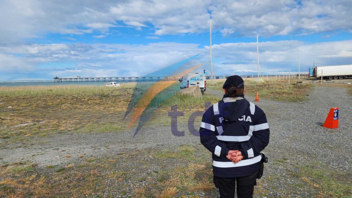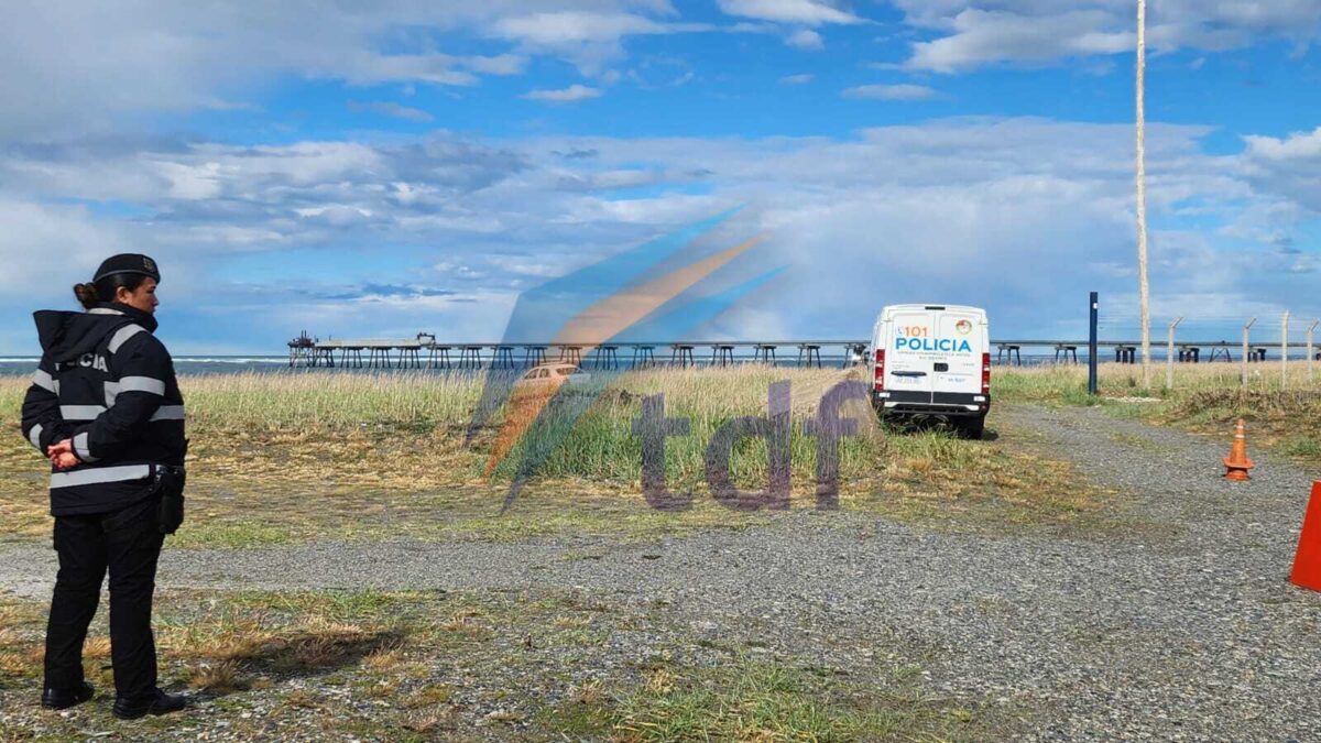 Peritos policiales y forenses de la justicia provincial trabajan en forma denodada con los restos hallados esta tarde por un ocasional transeúnte en la zona de la costa de Río Grande en el sector del puerto Caleta La Misión.