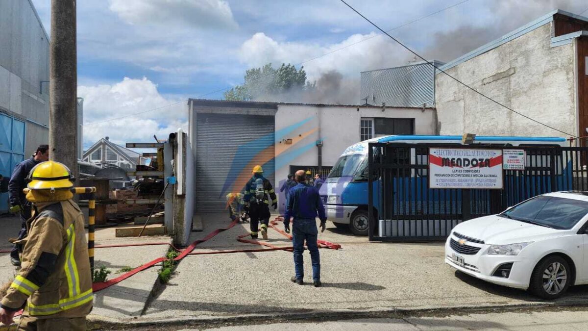 Un incendio se registró esta tarde en la calle San Lorenzo, frente a Río Chico, donde se vieron afectados el Taller «Electricidad Automotor Mendoza» y un departamento que se encuentra en la parte superior del mismo.