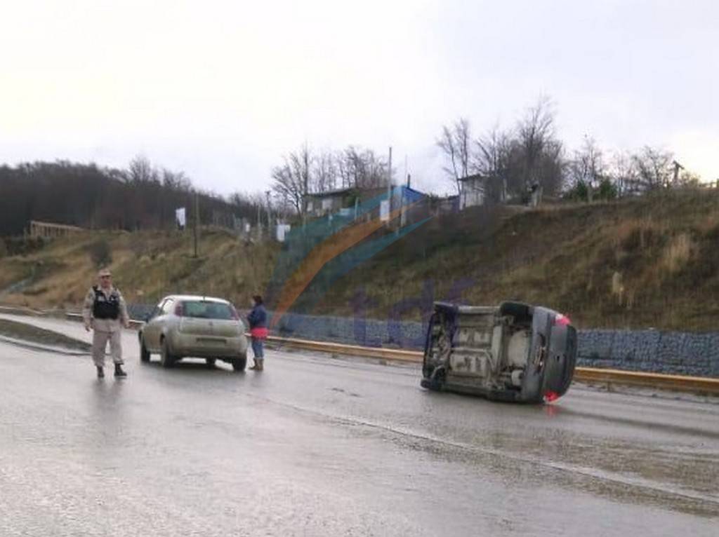 El increíble accidente se registró esta tarde en Héroes de Malvinas y Eva Peron de la ciudad de Ushuaia.