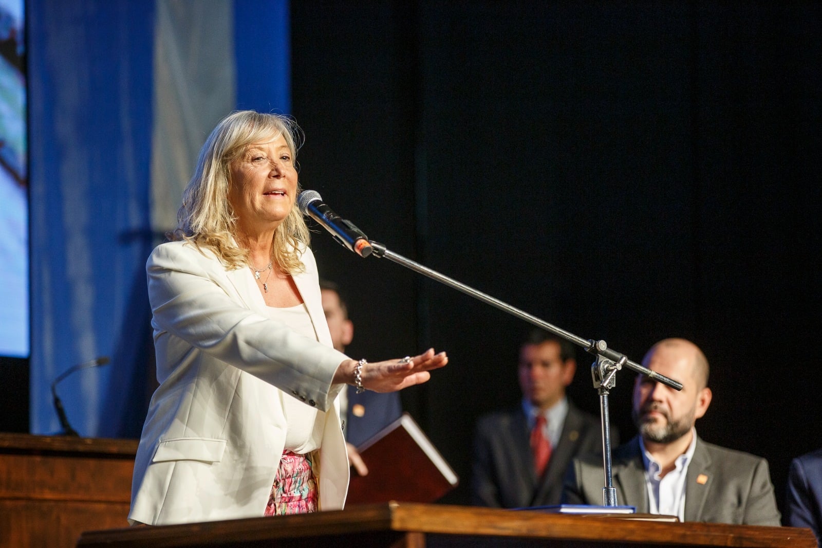 Ministra de Salud, Judit Di Giglio; Ministra de Producción y Ambiente, Karina Fernández.
