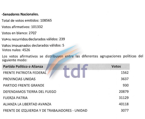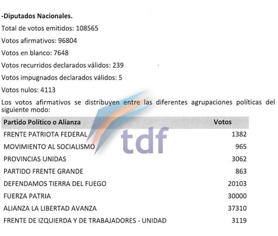 La Junta Electoral Nacional del Distrito de Tierra del Fuego dio por finalizado el escrutinio definitivo correspondiente a las elecciones legislativas del pasado 26 de octubre, en las categorías de senadores y diputados nacionales.