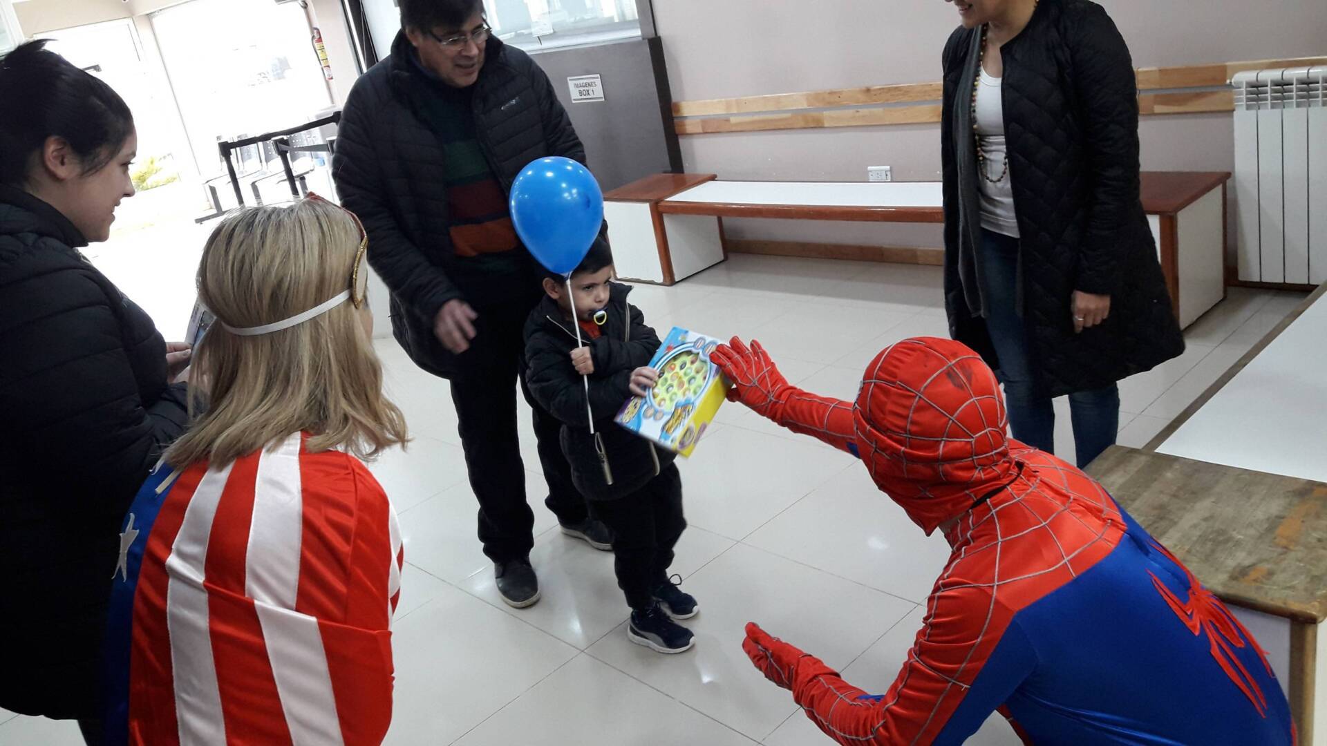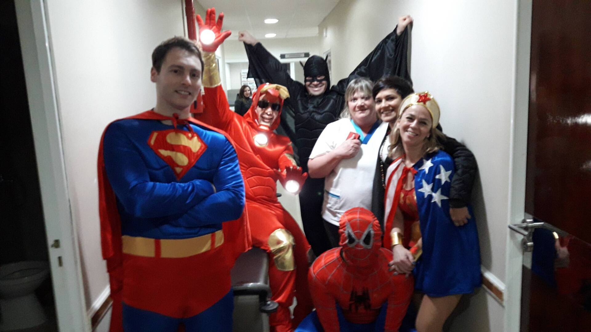 En el marco de los festejos por el día del niño los superheroes visitaron a los niños internados en el Hospital Regional Río Grande, el Cemep y el Sanatorio Fueguino.