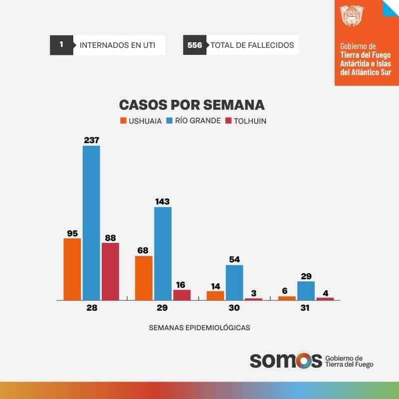El ministerio de Salud de Tierra del Fuego actualizó el informe de situación en cuanto a la pandemia de Covid-19 en la provincia y su evolución correspondiente a la semana 31 de este 2022.