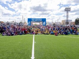 Culminaron con la colocación del césped sintético en la cancha del Centro Deportivo Municipal
