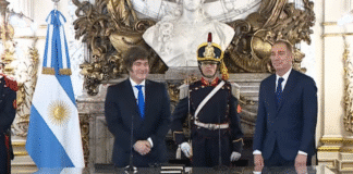 Javier Milei le tomó juramento a Diego Santilli como nuevo ministro...
