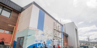 Trabajan en la pintura de un mural comunitario en homenaje a...