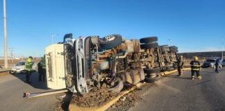 Impresionante vuelco de un camión que salía de Río Grande