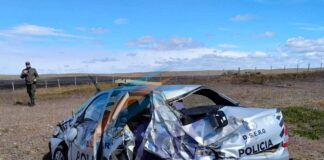 Violento vuelco de un patrullero al sur del Paso San Sebastián:...