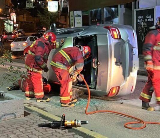 Conductor volcó sobre la ciclovía y terminó a centímetros de caminantes