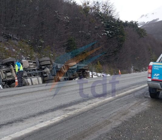 Volcó un camión de transporte pesado en ruta 3 camino a Ushuaia