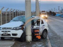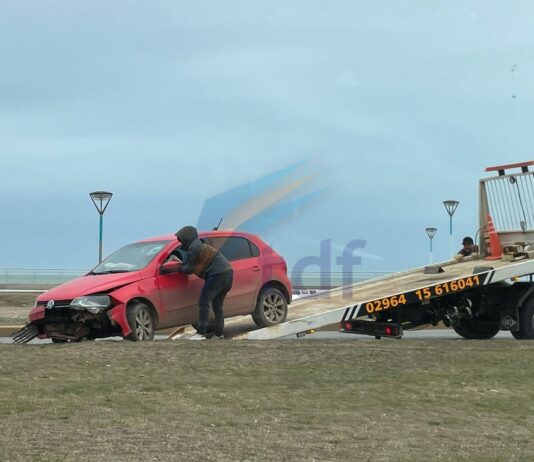 Un auto impactó un guardarrail frente al monumento de Malvinas de Río Grande