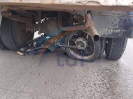 Una moto terminó debajo de un camión, el conductor fue hospitalizado