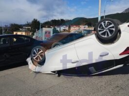 Chocó autos estacionados y terminó volcando en Ushuaia