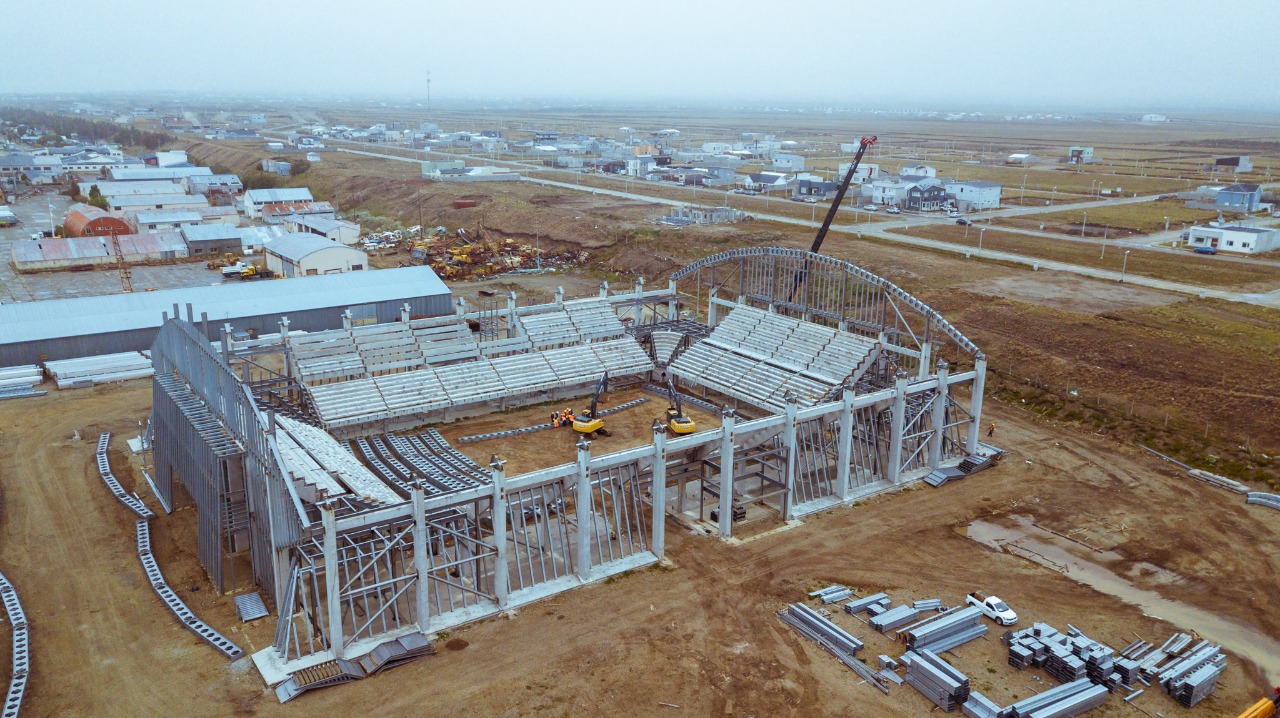 Iniciaron el montaje de la estructura de la cubierta en la obra del Microestadio de Río Grande