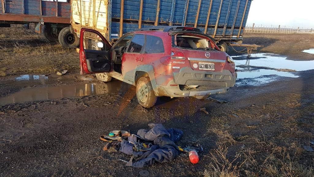Tras volcar sobre la banquina terminó impactando con acoplados para el transporte de ganado, que están estacionados frente a una chacra, a prudente distancia de la ruta.