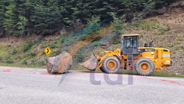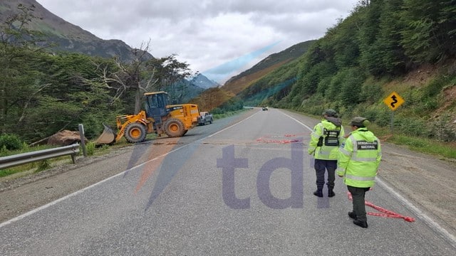 La piedra de gran tamaño se desprendió y cayó sobre el asfalto en el kilómetro 3055 de la ruta nacional 3 a unos pocos kilómetros de Ushuaia.