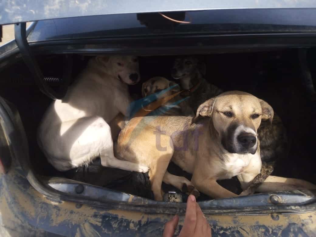Luego de esta denuncia, personal policial apostado sobre la ruta 3 detuvo un Renault modelo Logan conducido por Ismael Ortíz, quien llevaba cuatro perros en el baúl.