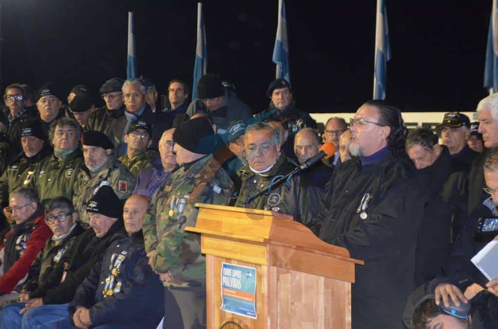 El ex combatiente Sergio Marroco fue el encargado este año del discurso, iniciando en un emotivo momento inicial, “permítanme recordarles y situarnos hoy en el cementerio de Darwin, en aquellos compañeros y todos los que han pasado en estos años que no han soportado la invisibilización”, dijo.