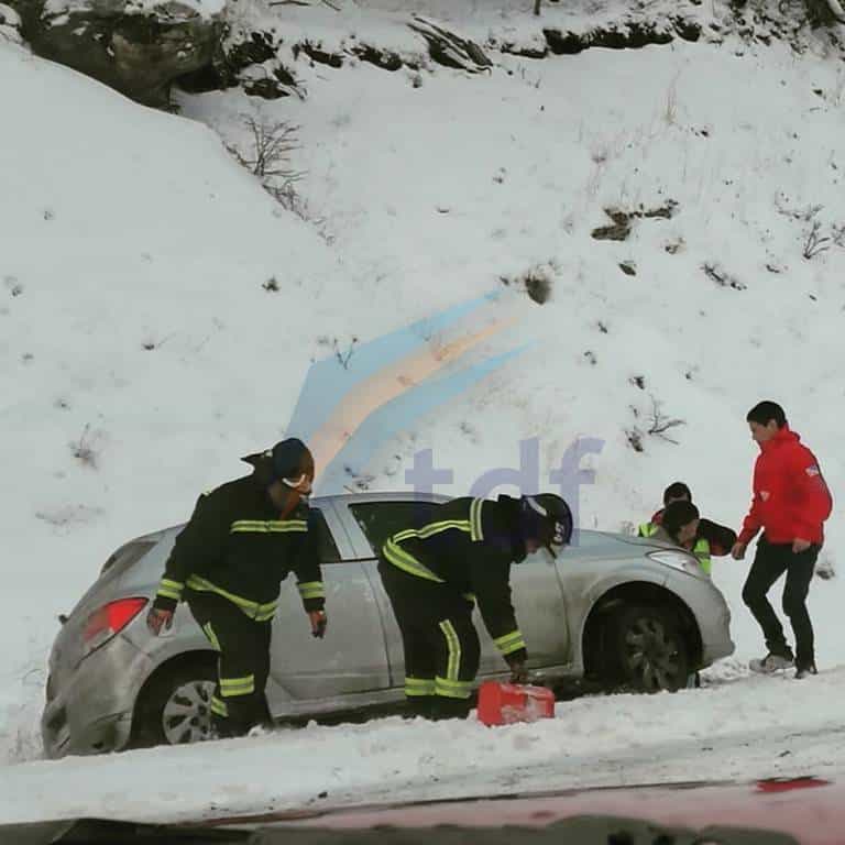 Sucedió a primera hora de esta tarde en que un rodado Chevrolet Onix con dos ocupantes a bordo volcó tras despistarse a causa del hielo sobre la calzada.