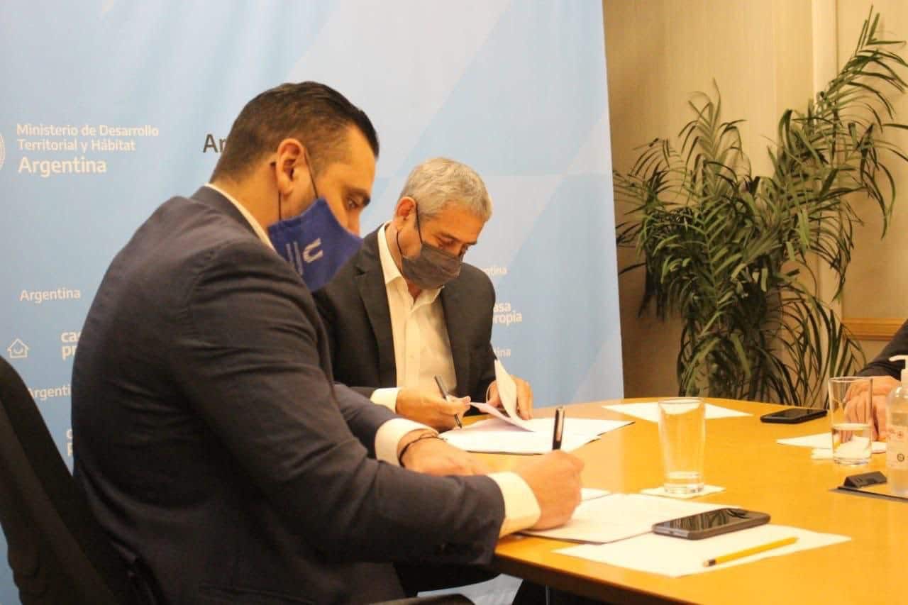 El intendente de Ushuaia Walter Vuoto firmó con el ministro Jorge Ferraresi, titular del Ministerio de Desarrollo Territorial y Hábitat de la Nación, dos convenios que permitirán el acceso a más de 600 créditos del programa Casa Propia, para la construcción de viviendas en los lotes de la urbanización San Martín, a través de la Ventanilla Única habilitada en la Municipalidad.