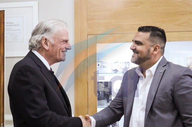 El intendente de Ushuaia, Walter Vuoto recibió este sábado a Franklin Graham y a Chris Swanson, presidente y director ejecutivo de la Asociación Evangelística Billy Graham, en el marco de los preparativos del evento “Esperanza Ushuaia”, que se desarrollará hoy y mañana en el Microestadio Municipal Cochocho Vargas.